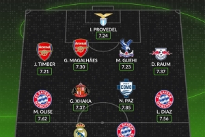 后衛:廷伯(阿森納)、加布里埃爾(阿森納)、格伊(水晶宮)、勞姆(萊比錫)