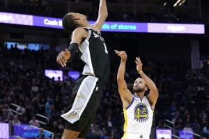 上半場卡斯爾不停攻擊庫里,庫里還以內切,15分。下半場開始,馬刺路徑依賴,瓦塞爾和巴恩斯追打庫里,但庫里做了個動搖馬刺根本的事: