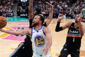 上半場卡斯爾不停攻擊庫里,庫里還以內切,15分。下半場開始,馬刺路徑依賴,瓦塞爾和巴恩斯追打庫里,但庫里做了個動搖馬刺根本的事: