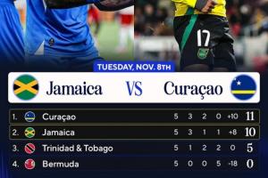 5輪過后,庫拉索11分小組第一,領先小組第二牙買加1分,下輪兩隊將直接交手,庫拉索不敗即直通世界杯,比賽于北京時間11月19日9點在牙買加主場進行。兩隊首回合交手,庫拉索主場2-0擊敗牙買加。