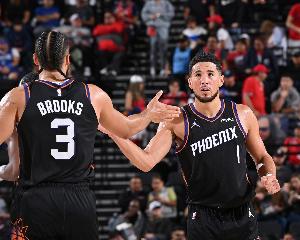 布克出戰29分鐘,投籃22中12,三分球10中3,罰球6中6,轟下33分5籃板7助攻的數據。