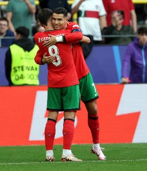 全文摘要:世預賽中,葡萄牙中場布魯諾-費爾南德斯上演帽子戲法,國家隊進球數達28球,躋身隊史射手榜第6位。C羅以143球高居榜首,保萊塔、尤西比奧等名緊隨其后。
