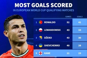 全文摘要:歐洲世預賽歷史射手榜,C羅以52場41球高居榜首,萊萬以43場33球位列第二。哈蘭德雖僅出戰14場,但已貢獻21球,排名第七,展現驚人效率。凱恩、德佩等名將也榜上有名。