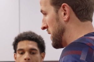依照傳統,賽后英格蘭隊長凱恩在更衣室里為寬薩頒發紀念帽子,祝賀他完成國家隊首秀。