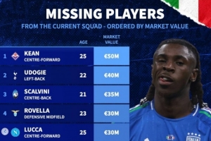 缺席本期意大利隊球員身價榜: