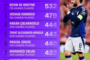 全文摘要:根據Squawka數據,自2019-20賽季以來,曼聯中場B費以206場創造567次機會,位居五大聯賽創造機會榜首位,領先德布勞內、基米希等球星。