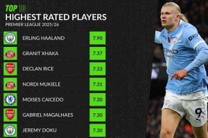 全文摘要:截至英超第11輪,WhoScored球員評分榜公布。哈蘭德以7.90分高居榜首,展現出色狀態。扎卡以7.37分位列第二。賴斯、穆基勒、凱塞多等緊隨其后,前五名球員評分均超7.30分。曼城與阿森納球員表現亮眼,占據榜單前列。