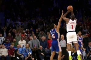 漏判3:比賽最后7秒,格萊姆斯與哈登的左臂發生接觸,該接觸影響了哈登的跳投動作,此為打手犯規漏吹。