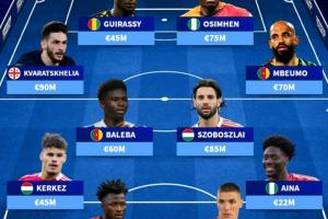前鋒:克瓦拉茨赫利亞(格魯吉亞、9000萬)、吉拉西(幾內亞、4500萬)、奧斯梅恩(尼日利亞、7500萬)、姆伯莫(喀麥隆、7000萬)