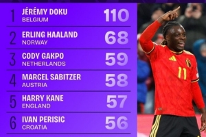 世歐預對方禁區觸球榜:多庫斷崖領跑,哈蘭德、加克波、凱恩在列