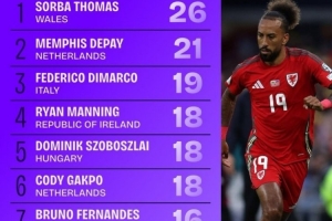 世預賽成功傳中榜:德佩、迪馬爾科分列二三,索博、B費在列