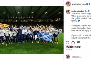 全文摘要:蘇格蘭隊長羅伯遜社媒激動宣布球隊晉級世界杯。他盛贊球隊如家人,感謝球迷的支持,并為自己能成為這群“非凡之人”的隊長而自豪。他充滿信心地表示,蘇格蘭已準備好迎戰世界杯,為國家榮耀而戰。