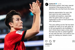 今日安永佳更新社媒,表達了對無緣亞洲杯的遺憾,他寫道: