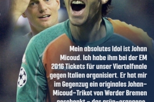 克羅斯還講述了他與米庫交換禮物的事情:“2016年歐洲杯在法國舉行時,我為他安排了我們對陣意大利的四分之一決賽門票。作為回報,他送給我一瓶他自己種植的葡萄酒和一件當年他在不萊梅穿的原版球衣。”