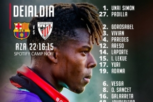 在續約前后,畢爾巴鄂都曾公開批評巴薩,兩家俱樂部關系緊張。如今看來,他們似乎并未忘記過去,畢爾巴鄂的社媒選擇使用尼科照片來公布他們前往諾坎普球場的比賽陣容。