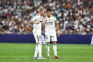 在居勒爾的身邊,馬斯坦托諾也強勢崛起,他成熟的競技狀態和極具感染力的個性令所有人感到驚訝。馬斯坦托諾的比賽風格充滿斗志與激情,同時也展現出穩定的天賦。他為阿隆索提供了源源不斷的活力,因為他總是第一個發起逼搶,在右路不知疲倦的奔跑,把這股能量傳遞給隊友,同時還有突破和制造威脅的能力。如果說居勒爾代表著節奏掌控、創造力和天生的才華,那么馬斯坦托諾則是著力量、投入和激情的化身。當兩人同時在場時,皇馬的整體明顯更加平衡。