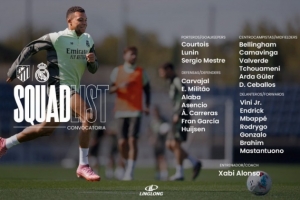 體育資訊9月26日訊 北京時間明天晚上22點15分,皇馬將在西甲第7輪比賽中客場對陣馬競,皇馬公布了此役的球員名單,呂迪格、阿諾德、門迪繼續缺席。