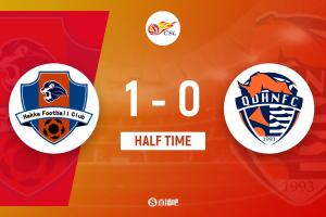 第44分鐘,梅州客家取得領先,茹子楠右腳遠射,皮球發生折射后飛入球網,梅州客家1-0領先青島海牛。↓