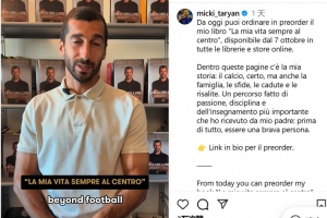 姆希塔良寫道:“從今天起,你可以預購我的書《我的生活永遠在中場》,該書將于10月7日起在所有書店和線上平臺正式發售。”