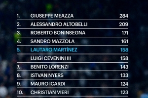 據國米官方統計,勞塔羅為國米攻入158球,排名隊史射手榜第5位。