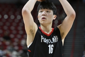 楊瀚森:目前來說好像還沒有。就是跟著大家一起練,在場上有時候有一些不對的地方,大家跟我說,然后我去改正。