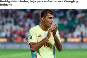西班牙國家隊球員羅德里因傷落選本期大名單,將無法參加在埃爾切對陣格魯吉亞及在巴利亞多利德對陣保加利亞的兩場2026年世界杯預選賽。本周日布倫特福德對陣曼城的比賽中該球員被替換下場后,其所屬俱樂部向西班牙皇家足球協會醫療部門提交的體檢報告確認了傷情。