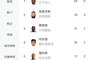 全文摘要:中甲聯賽25輪射手榜更新,本輪上演“梅開二度”的姆本扎以24球高居榜首。埃里克斯與向余望分別貢獻進球,分列第二、第四位。穆謝奎、福布斯和若昂-卡洛斯緊隨其后,競爭激烈。
