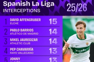 全文摘要:Squawka統計了西甲本賽季攔截榜。埃爾切球員阿芬格魯伯以15次居首。馬競的巴里奧斯與畢爾巴鄂的豪雷吉薩爾均以14次并列第二,皇馬的瓊阿梅尼則以12次并列第六。