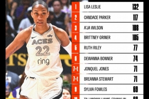 據統計,本場過后阿賈-威爾遜在季后賽蓋帽數來到108個,她也超越格里娜,獨居WNBA歷史第3位。在她身前是坎迪斯-帕克的117次和麗莎-萊斯莉的132次。