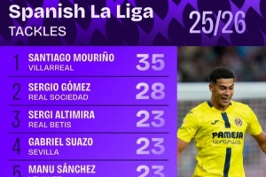 全文摘要:Squawka統計顯示,本賽季西甲搶斷榜上,比利亞雷亞爾后衛圣地亞哥·穆里尼奧以35次搶斷位居第一。皇家社會球員塞爾吉奧·戈麥斯以28次位列第二,貝蒂斯的阿爾蒂米拉與塞維利亞的蘇亞索同以23次并列第三。