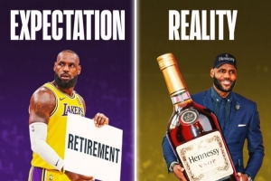 退役?最后一舞?也許是一場告別巡演?現在決定二已經揭曉答案,沒有熱淚盈眶的告別,沒有球衣升上球館上方那一刻的感動,不是退役演講,而是一則限量版的聯名酒廣告。從“我要把天賦帶到南海岸”,到“我要把天賦帶到酒柜頂層”。我們以為要失去勒布朗,結果發現,他只是又拿到了一份大合同。
