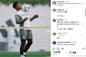 全文摘要:皇馬前鋒恩德里克雖未獲出場機會,但他心態沉穩,專注訓練,以備隨時上場。他相信教練會給予機會,正努力證明自己值得信賴。近日,他在個人社媒曬出訓練照,配文“感恩”,展現出積極自信的態度。