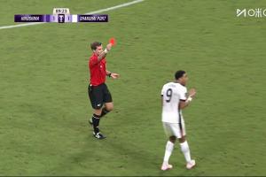 亞冠精英聯賽東亞區第2輪,廣島三箭vs上海海港第90分鐘,海港前鋒古斯塔沃拼搶中犯規,主裁判果斷直紅將其罰下,VAR核實后維持了原判。