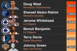 1、道格-韋斯特,累計凈勝分:-4052,出戰場次:676,場均凈勝分:-5.99。