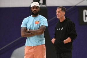 這是第一個事,第二個事就更直接了,詹姆斯的合同是26年(明年)到期,但是今年有球員選項,是吧?按說這時候球隊要提前跟詹姆斯談續約了,歷史上每一回球隊都是這么來的,是吧?他過去跟騎士談1+1,+1完了一年騎士就得趕緊找人家,求爺告奶奶,咱趕緊執行,要不然咱提前再簽一長的,比如+5呢?再簽一長的+3、+5,您看看怎么著?就是趕緊找他。每一回都是合同早就準備好了,按數最大的填,您就直接簽字,是吧?大哥,您來,您看咱們怎么簽?求求您了,您跟我們續吧,都是這樣啊。可是這回,今年夏天湖人都沒跟詹姆斯談續約這事。湖人連續約的合同都沒拿出來,都沒找你。