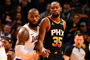 上賽季杜蘭特交出兩分球57.4%三分球43.0%罰球83.9%的高效數據,詹姆斯過去五年在投籃命中率、三分命中率、罰球命中率及有效命中率上均大幅落后杜蘭特。