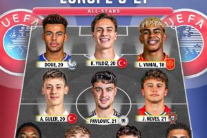 全文摘要:Score 90評選出歐洲U21全明星陣容。亞馬爾與若昂-內維斯領銜,西班牙三人最多,法、英、土各兩人,德、葡各一人。陣容包含來自皇馬、巴薩、曼城等豪門的新星,展現了歐洲足壇青年才俊的強大實力。