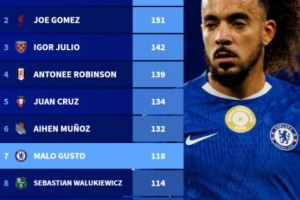 全文摘要:德國轉會市場統計了五大聯賽零進球出場球員排行,昂熱球員巴姆巴以154場居首,利物浦的喬-戈麥斯以151場次席,切爾西的古斯托以118場位列第七。