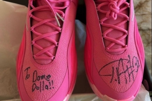 字母哥給利拉德的是他最新發布的簽名鞋Freak 7,字母哥也貼心的簽上了“to簽”,寫了利拉德的外號“Dame Dolla”。