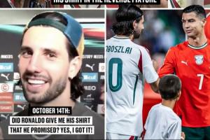 比賽結束后,索博斯洛伊接受采訪,被問及C羅有沒有遵守諾言把球衣給他,索博斯洛伊開心地回答道:“是的,我拿到了!”