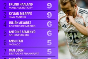 體育資訊10月17日訊 本周末,歐洲五大聯賽將重燃戰火。Squawka盤點了本賽季迄今為止五大聯賽進球數情況,凱恩以11球居首,哈蘭德和姆巴佩均打進9球緊隨其后。