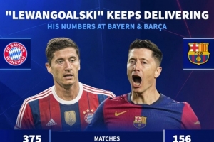 萊萬在拜仁、巴薩數據: