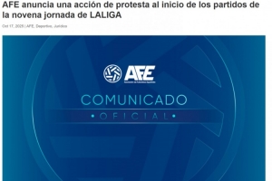據西媒報道,西甲球員將在第9輪比賽開始時進行一場持續20至30秒的暫停比賽,表達對西甲在邁阿密舉行比賽一事的抗議。