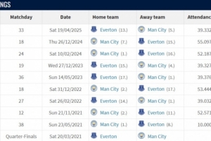 全文摘要:英超第8輪曼城主場迎戰埃弗頓。雙方歷史交鋒中,曼城占據絕對優勢,近10次交手保持8勝2平不敗,進23球僅失3球,展現了強大的統治力。