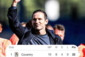 蘭帕德的球隊近4場比賽豪取4連勝且1球沒丟,4場一共打入14球:3-0伯明翰、4-0米爾沃爾、5-0謝菲爾德星期三、2-0布萊克本。目前6勝4平的考文垂以22分力壓米德爾斯堡,領跑英冠。